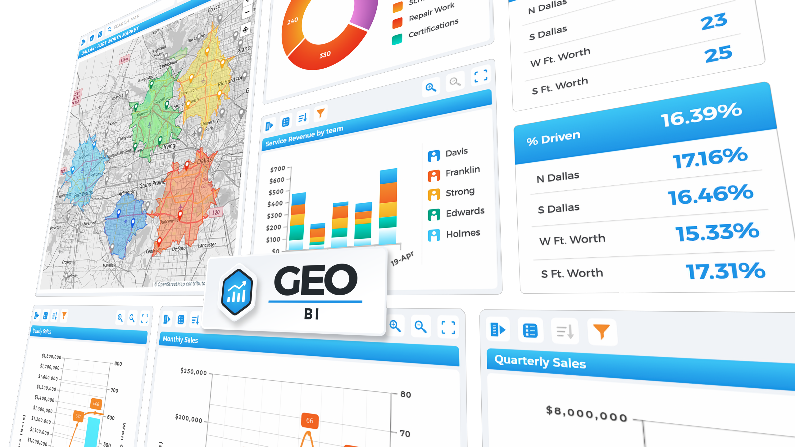 We are the only software solution built from the ground-up on our innovative Geospatial technology that leverages the power of distance and location in your data. We let you see exactly where you are, then help you chart a course to where you want to be!