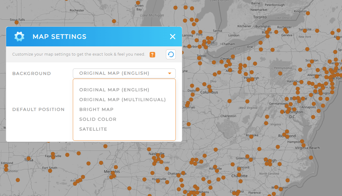 Add territories, pin groupings, or coverage circles on top of the satellite image. Overlaying business data helps reveal how the real-world environment impacts strategy. For example: a coverage circle might look strategic in street view, but satellite imagery could reveal an obstacle that limits access.