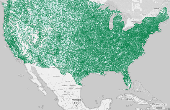 You can map a wide variety of boundaries, including city council districts, county lines, ZIP codes, US congressional districts, and state legislative districts. These can all be layered with your own business data for deeper analysis.