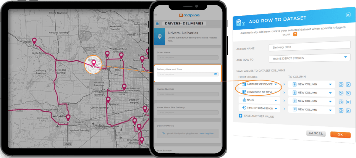 Mapline uses Driver & Delivery Geo-Match, which compares the delivery’s recorded latitude and longitude with the driver’s device location at the exact moment of completion. If the driver wasn’t physically on-site, dispatchers will know instantly.